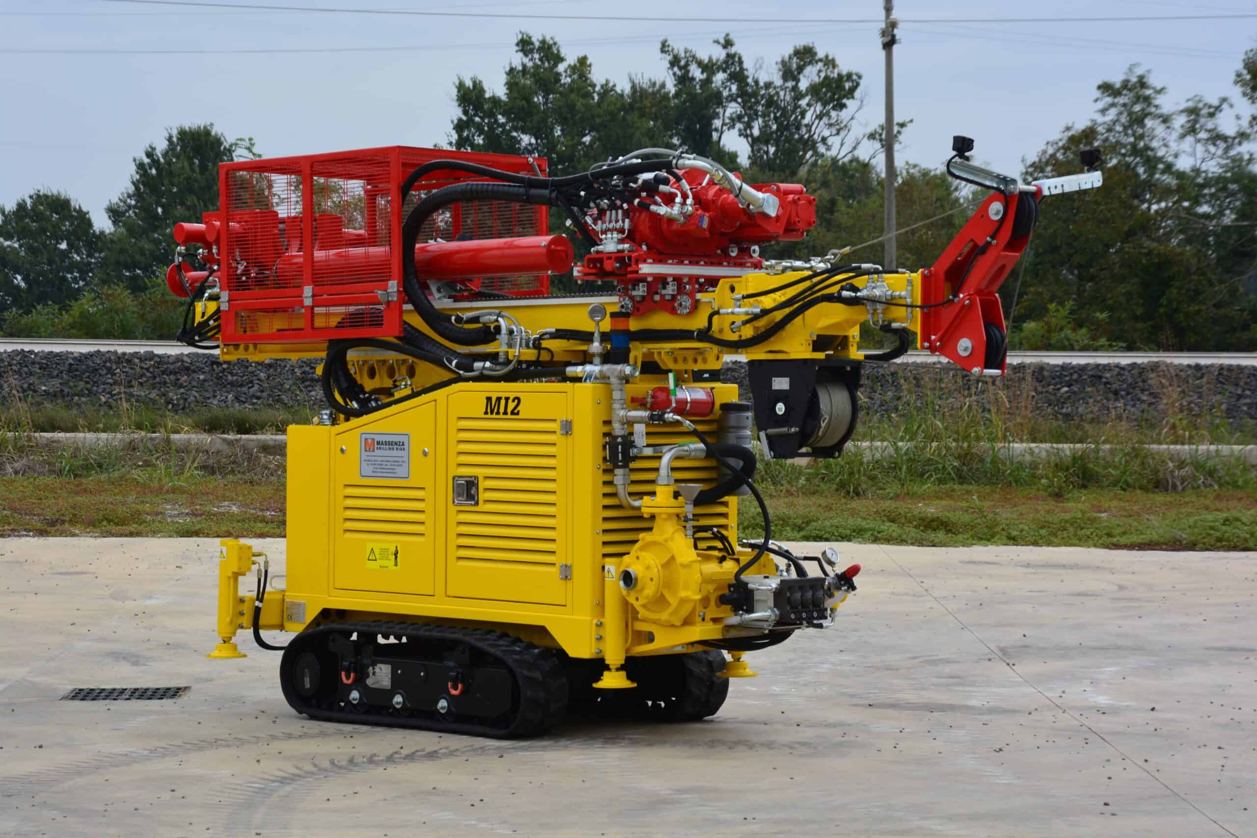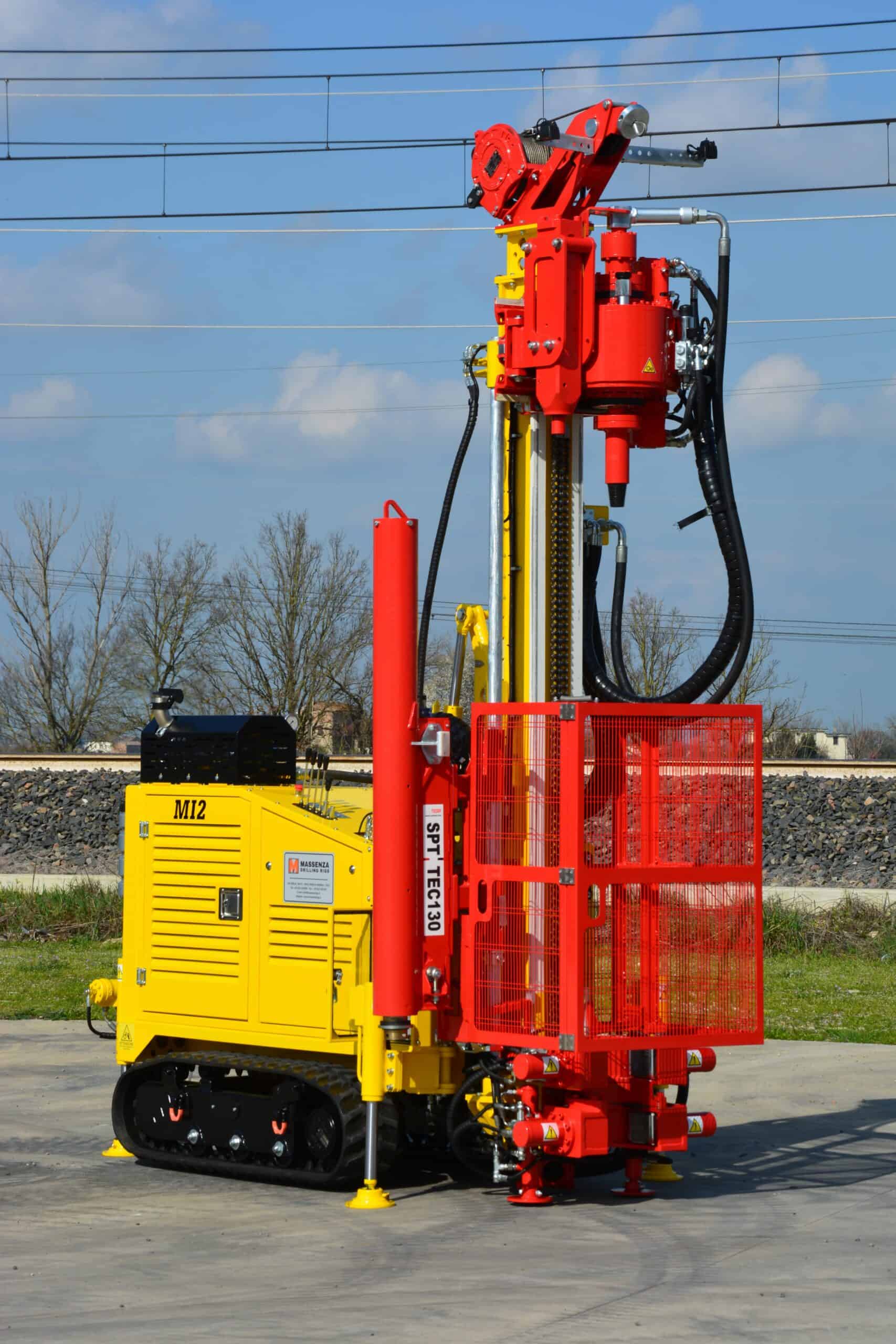 La perforadora Massenza MI2 es un equipo geotécnico compacto y potente de orugas, gestionado en su totalidad mediante radiocontrol. Diseñada para integrar en un solo chasis cabezal de rotación para testigos, martillo hidráulico y SPT automático, su peso optimizado de 2.650 kg permite transportarla fácilmente en un remolque estándar de 3.500 kg, ideal para maniobrar en espacios reducidos y urbanos.