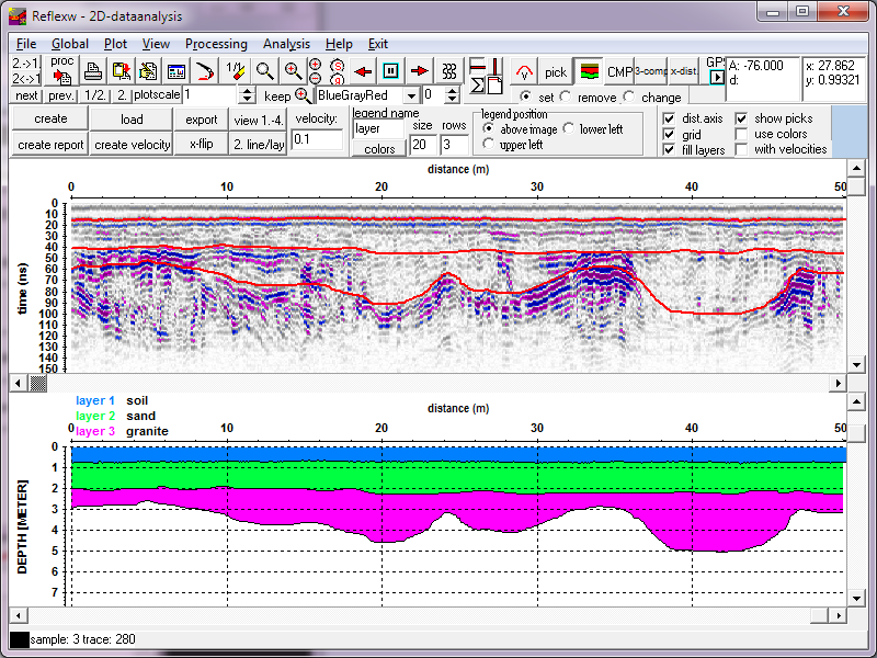 REFLEXW es reconocido mundialmente por su capacidad inigualable para procesar e interpretar casi cualquier tipo de dato basado en ondas. Desde la limpieza inicial de la señal mediante potentes algoritmos de filtrado, deconvolución y migración, hasta la construcción de modelos tridimensionales complejos. El módulo de análisis 2D permite un flujo de trabajo fluido, ofreciendo procesamiento por lotes para manejar grandes volúmenes de datos rápidamente. Además, su soporte integrado para coordenadas GPS permite realizar correcciones topográficas y correlacionar perfiles directamente con Google Maps o Earth, asegurando una georreferenciación perfecta.